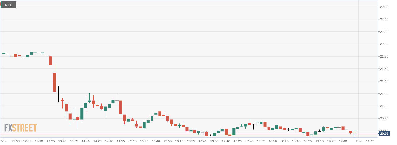 - NYSE:NIO fell by 8.98% during Monday’s trading session.