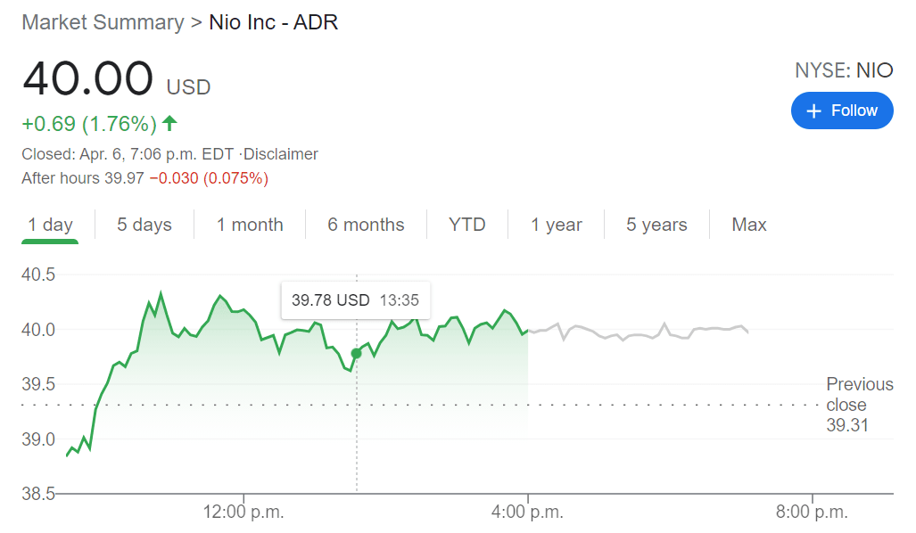 - NYSE:NIO added 1.76% on Tuesday as it continued its momentum from late last week.