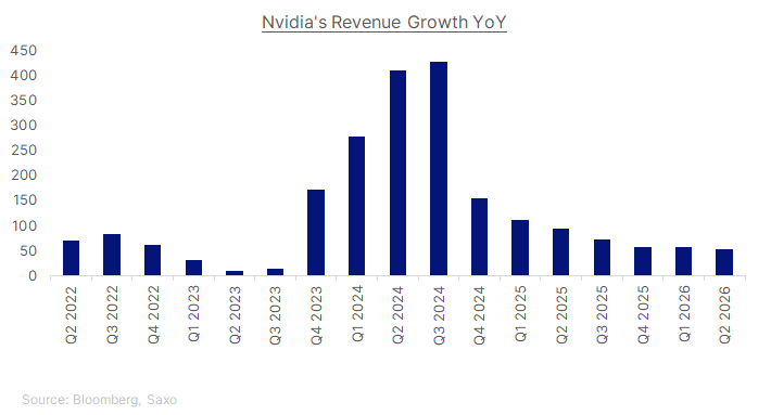- Peak cycle fears: If the market concludes Nvidia’s Q3 guidance signals peak demand, multiples could compress more broadly across AI leaders.