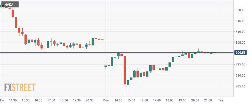 Update: Nvidia (NVDA) is up roughly 7% heading into Tuesday's close, trading at $321.22 per share. Wall Street's rally after a soft start to the week, with the Nasdaq Composite currently up 424 points or 2.01%. The Dow Jones Industrial Average added 442 points, while the NYSE is up 285 points. Finally, the S&P added 2.04% so far today. The upbeat tone of global indexes is the result of coronavirus-related optimism, as market players are pricing in the Omicron variant would result less aggressive. Nevertheless, there are no confirmations yet, and risk-off could make a sudden return to financial markets.