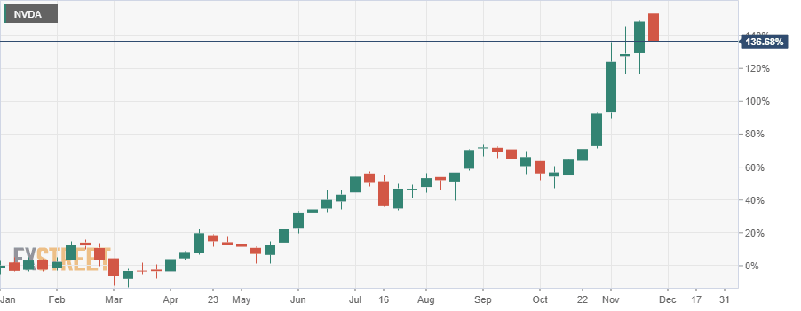 Nvidia, as one of the best-performing stocks in the year's best-performing sector (semiconductors), had much to lose but investors were not prepared to totally close their books on this one just yet. That is the fear as year-end approaches, that some names such as Nvidia with huge gains may be susceptible to year-end profit-taking.