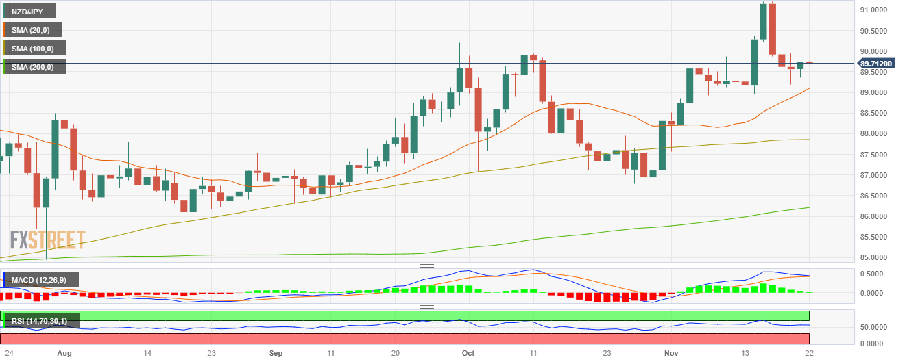 On Tuesday's session, the NZD/JPY pair was spotted at around 89.70, showing a modest uptick of 0.25%. In addition, rebounding from a 1.70% decline since Thursday, bears are momentarily stepping back, allowing the bulls to gain ground.