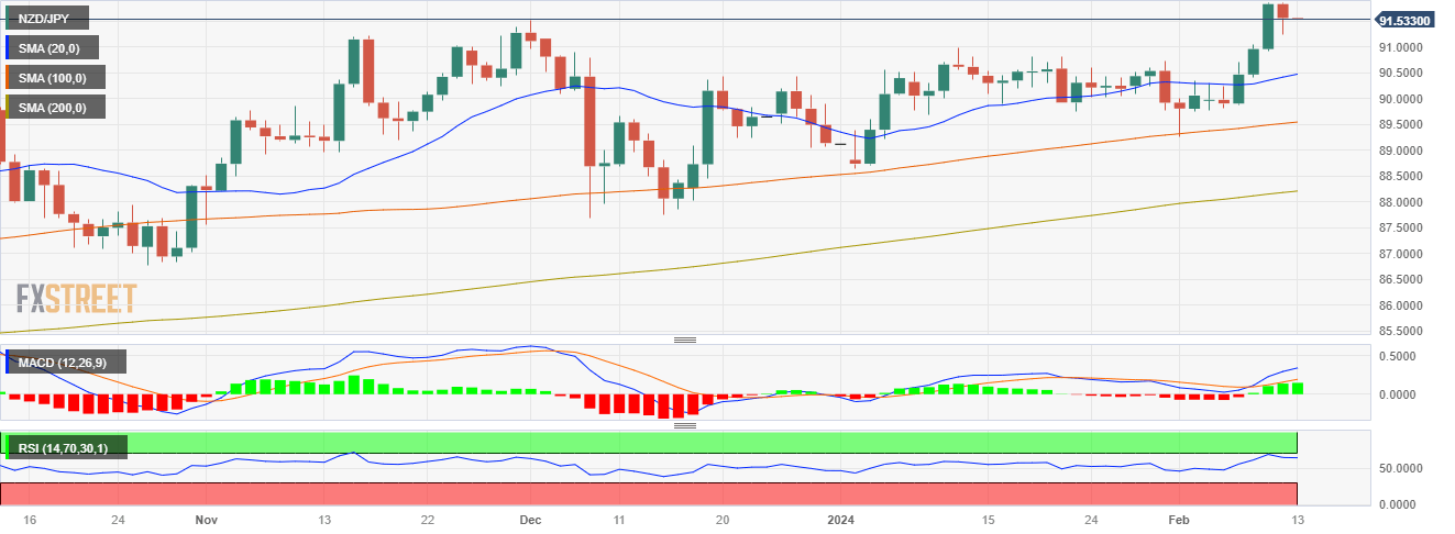 - The NZD/JPY trades at 91.567, recording 0.23% losses in Monday's session.