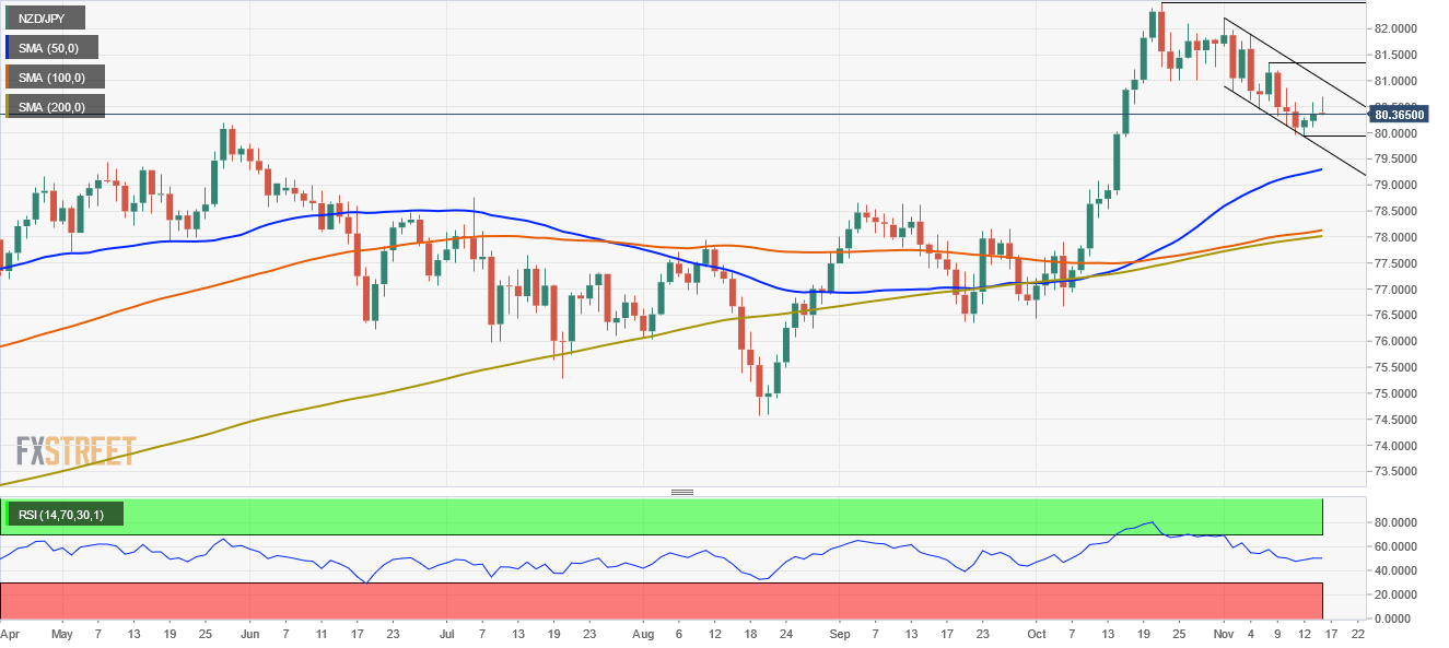 NZD/JPY Price Analysis: A bullish-flag pattern in the daily chart could open the door for 82.50