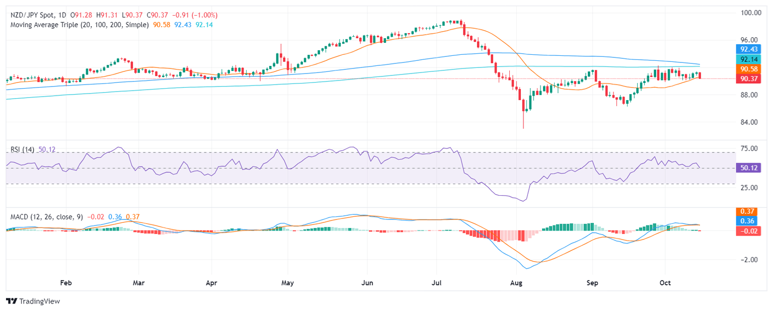 The 90.00 level is crucial for the pair’s near-term outlook. A breakdown below this support could open the door to additional losses, potentially targeting the next psychological support at 89.50. However, if the pair finds support above this level and buyers step in, a reversal could occur, targeting resistances at 91.00 and potentially 92.00, where the 20, 100, and 200-day simple moving averages converge.