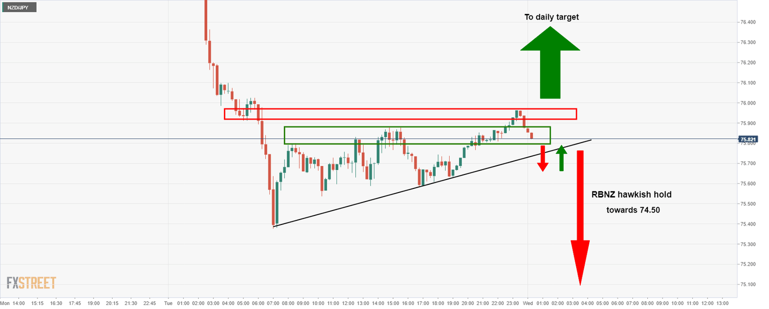 - NZD/JPY is awaiting the RBNZ and will depend on the outcome.