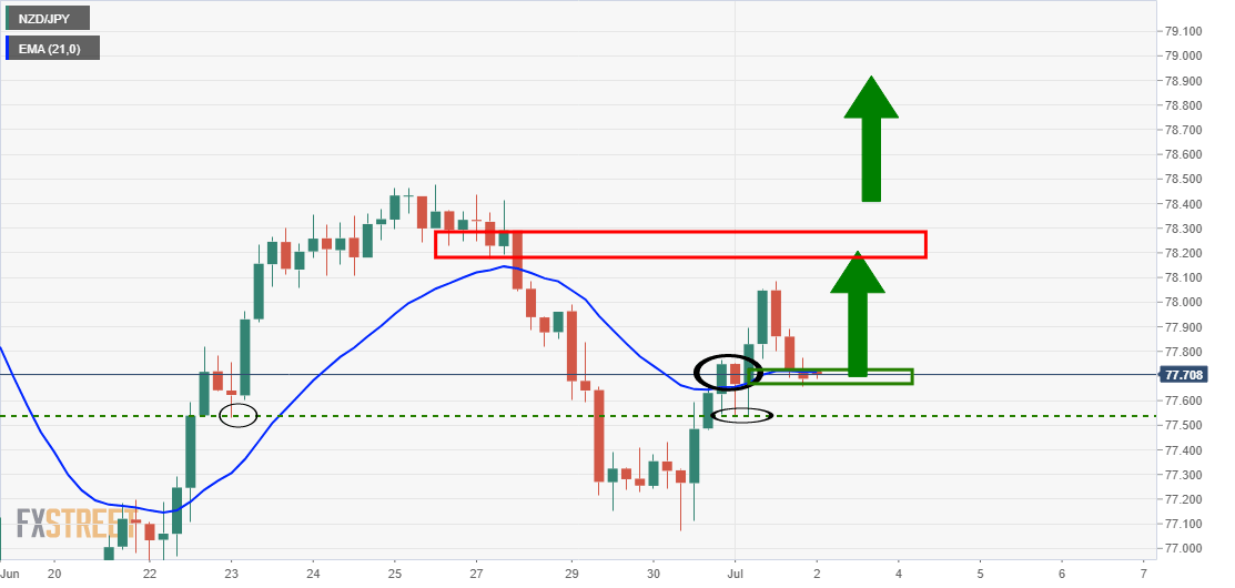 As per the prior Asian session's analysis, NZD/JPY Price Analysis: Bulls lurking at daily and 4-hour support, there are bullish prospects from support structures.