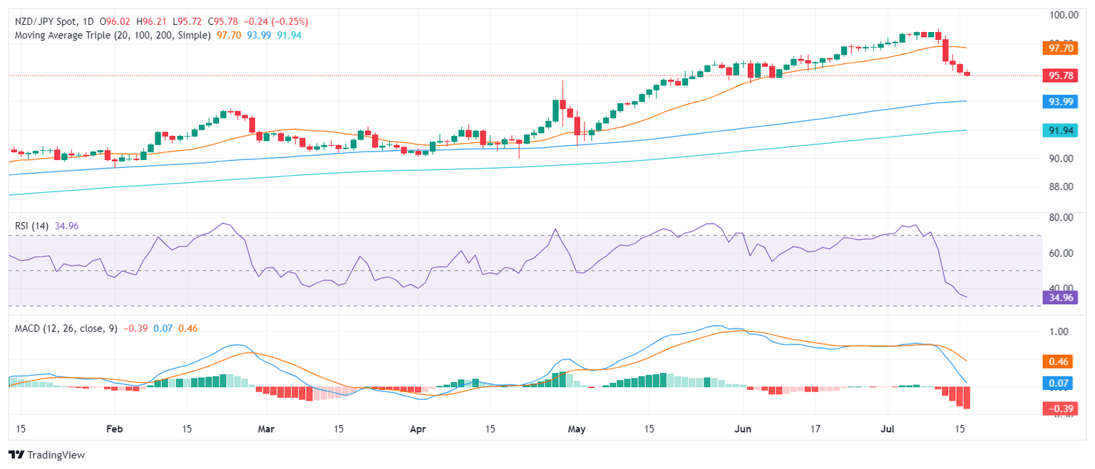 On Tuesday, the NZD/JPY saw more losses and fell below 96.00. The cross extended its bearish streak to five and is now down by more than 2.50% since last week.