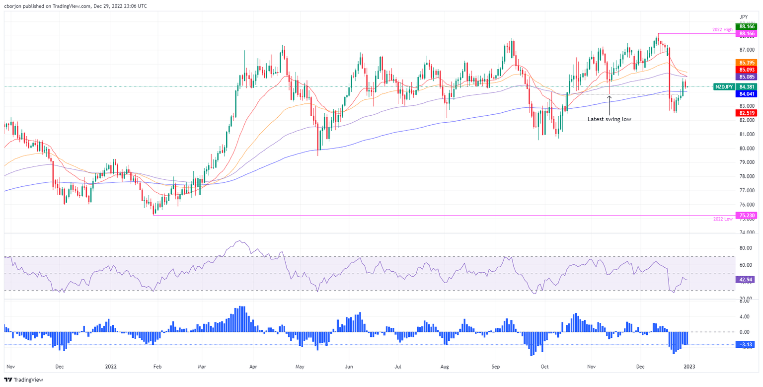 The NZD/JPY continued its downtrend after plummeting more than 300 pips following the Bank of Japan (BoJ) adjustment of its Yield Curve Control (YCC) on the 10-year JGB to 0.50%, which bolstered appetite for the Japanese Yen (JPY) to the detriment of most G8 currencies. At the time of writing, the NZD/JPY is trading at 84.34, slightly above the December 29 daily low of 84.20.