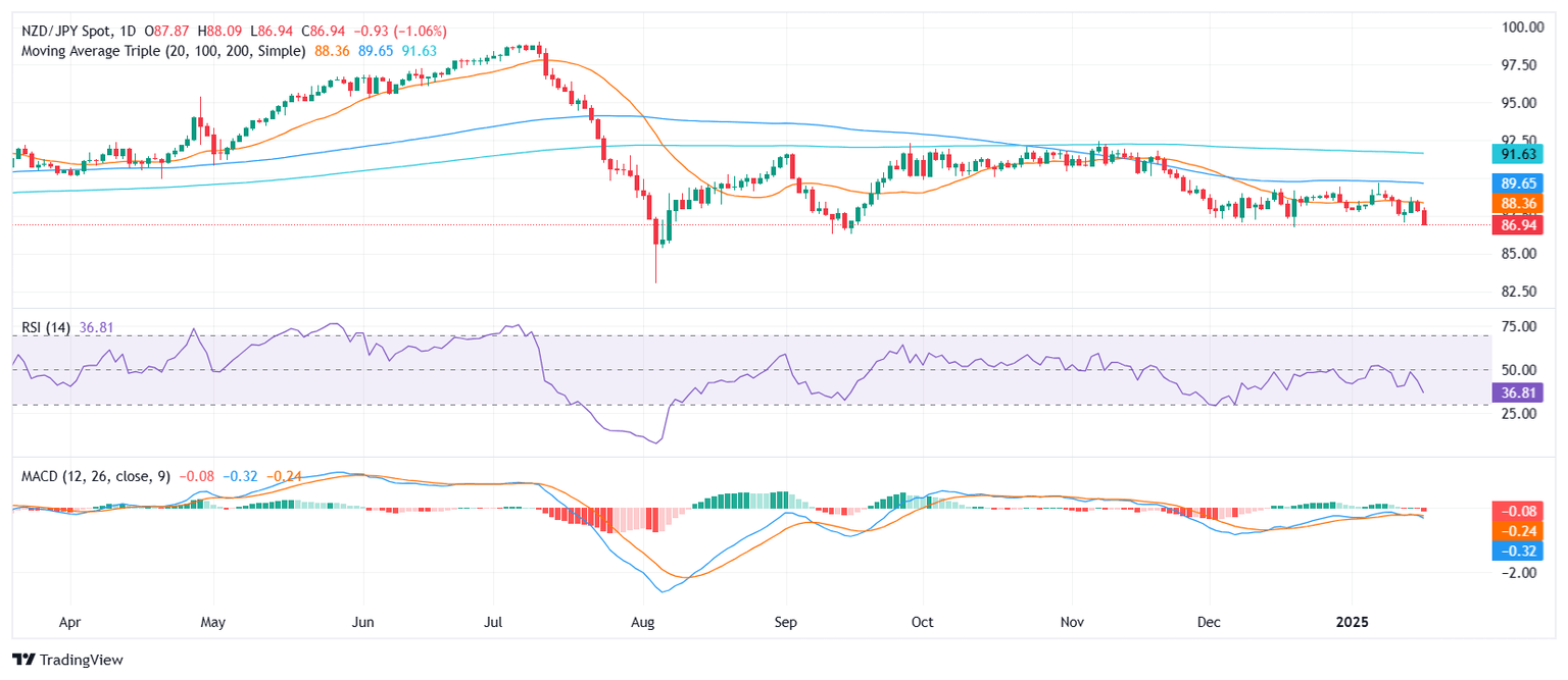 - NZD/JPY slipped to around 87.00 in a renewed wave of selling.