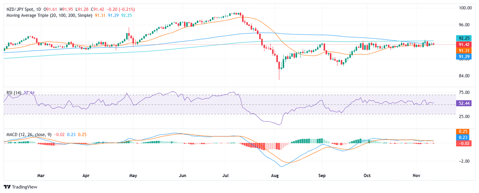 - NZD/JPY declines on Wednesday, trading near 91.45.