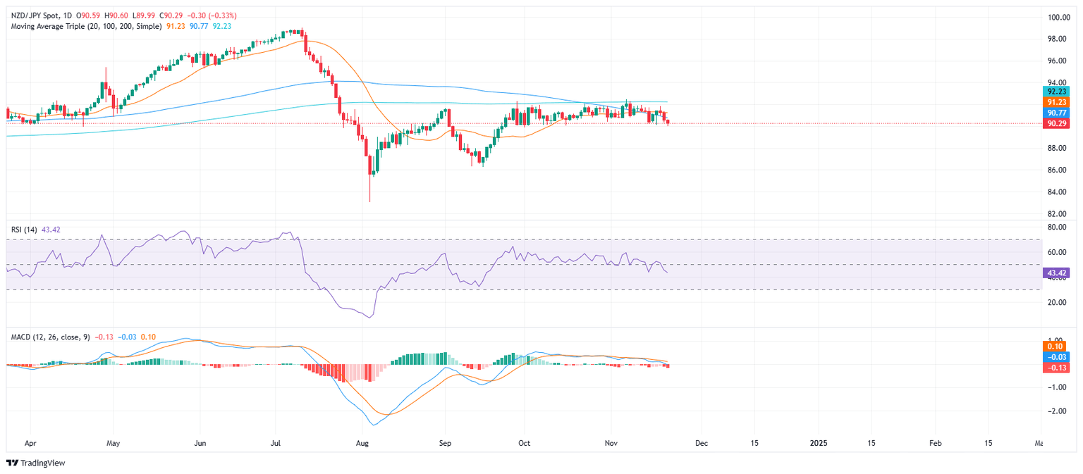 - NZD/JPY fell 0.27% on Friday, trading near the 90.30 level.