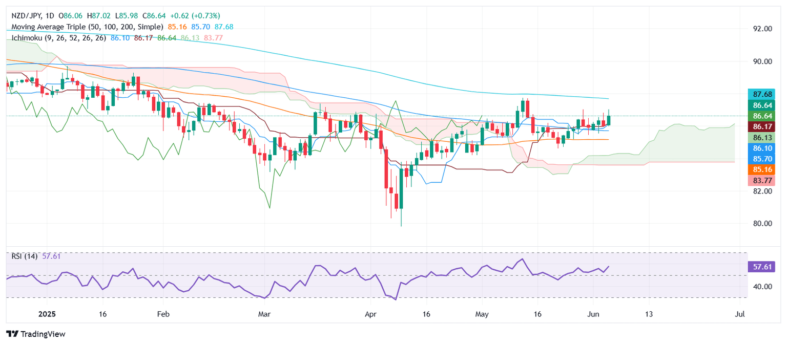- NZD/JPY holds neutral-to-bullish structure, eyeing 87.01 and May 13 high at 87.73.