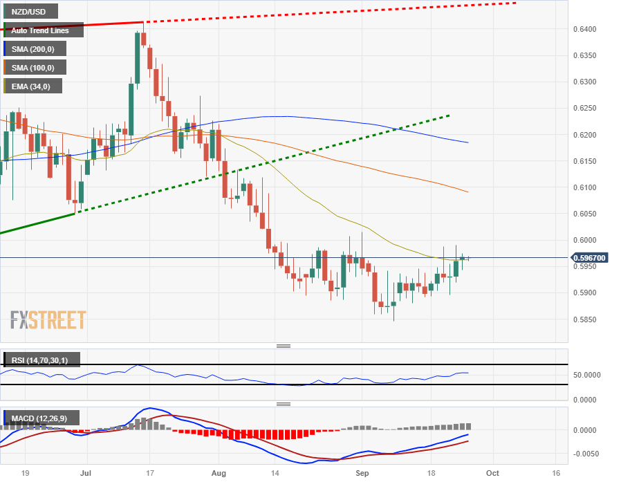 - The NZD/USD rebounded in Monday action, ending the day just south of 0.5970 after falling to 0.5940.