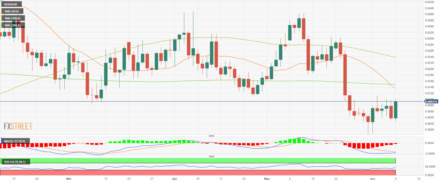 - The NZD/USD pair jumped above 0.6090 showing a 0.95% increase on the day.
