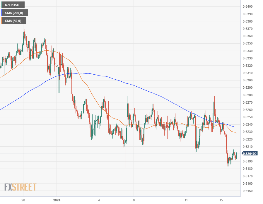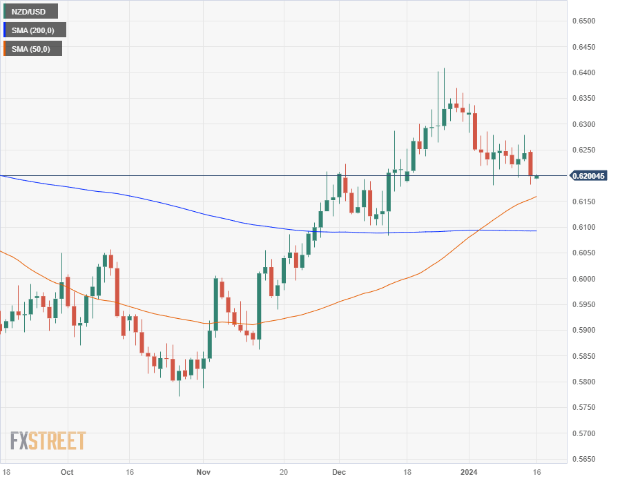 The Kiwi broke into the low side of a rough consolidation range that has plagued the NZD/USD since declining into the current chart range at the outset of 2024’s trading, testing back into the 0.6200 handle.