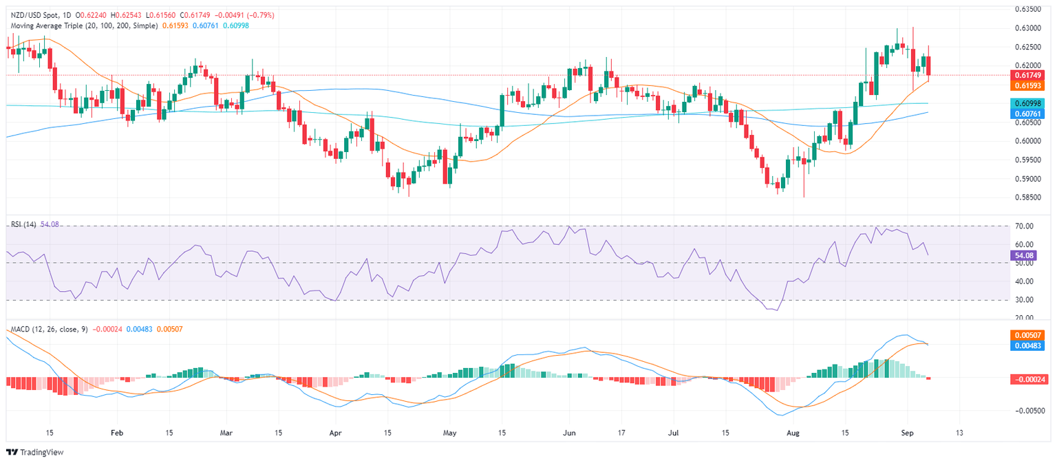 - NZD/USD falls 0.84% on Friday to trade at 0.6170.