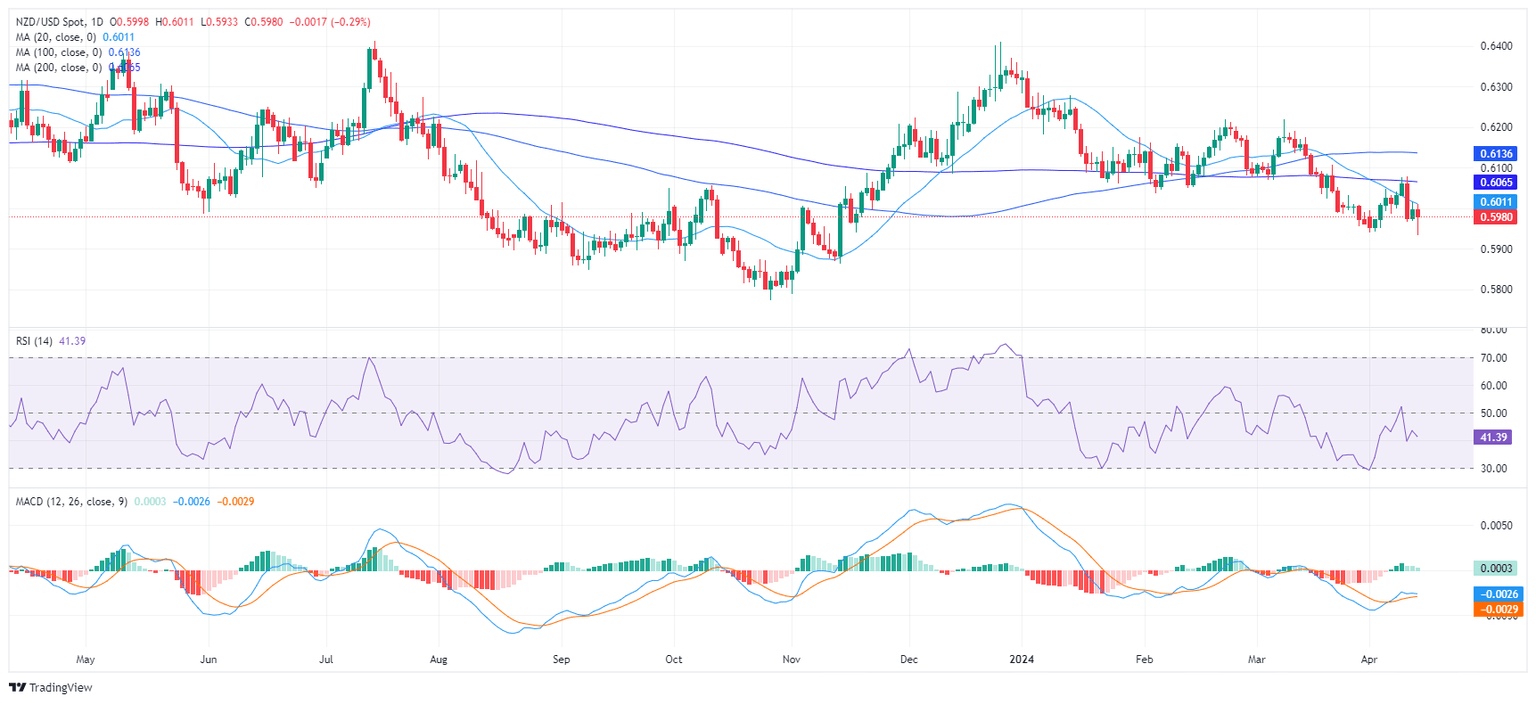 - The daily RSI of the NZD/USD reveals that sellers remain in command with values below 50.