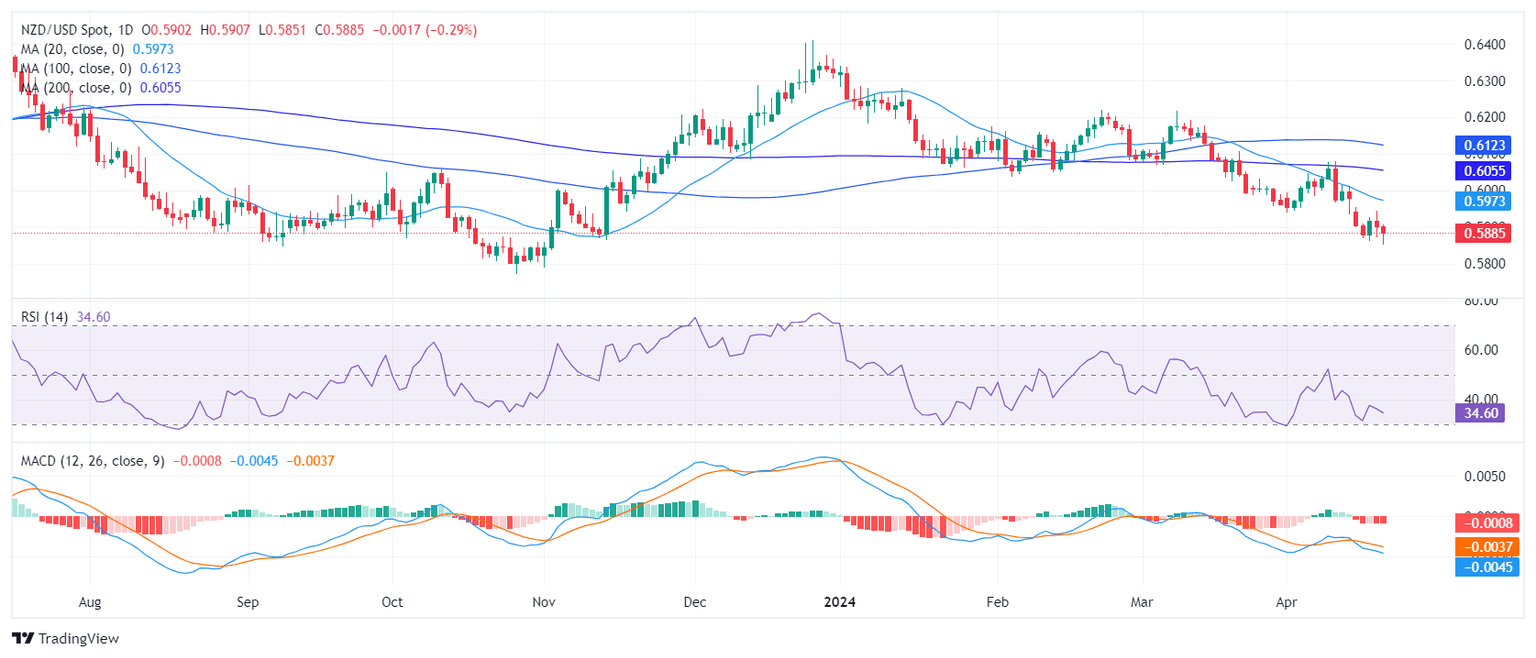 - The daily RSI for the NZD/USD reveals growing selling pressure, nearing oversold conditions.