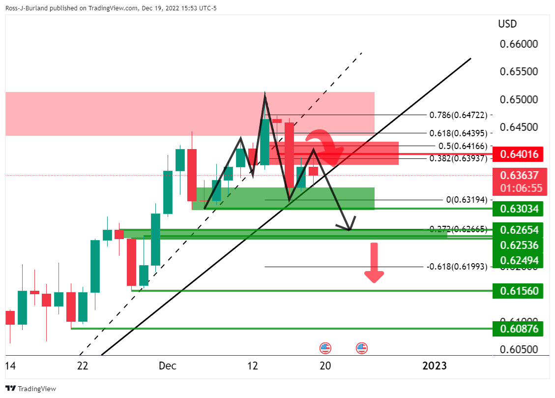 NZD/USD Price Analysis: Bears attempt to take control at a key support structure at 0.6340