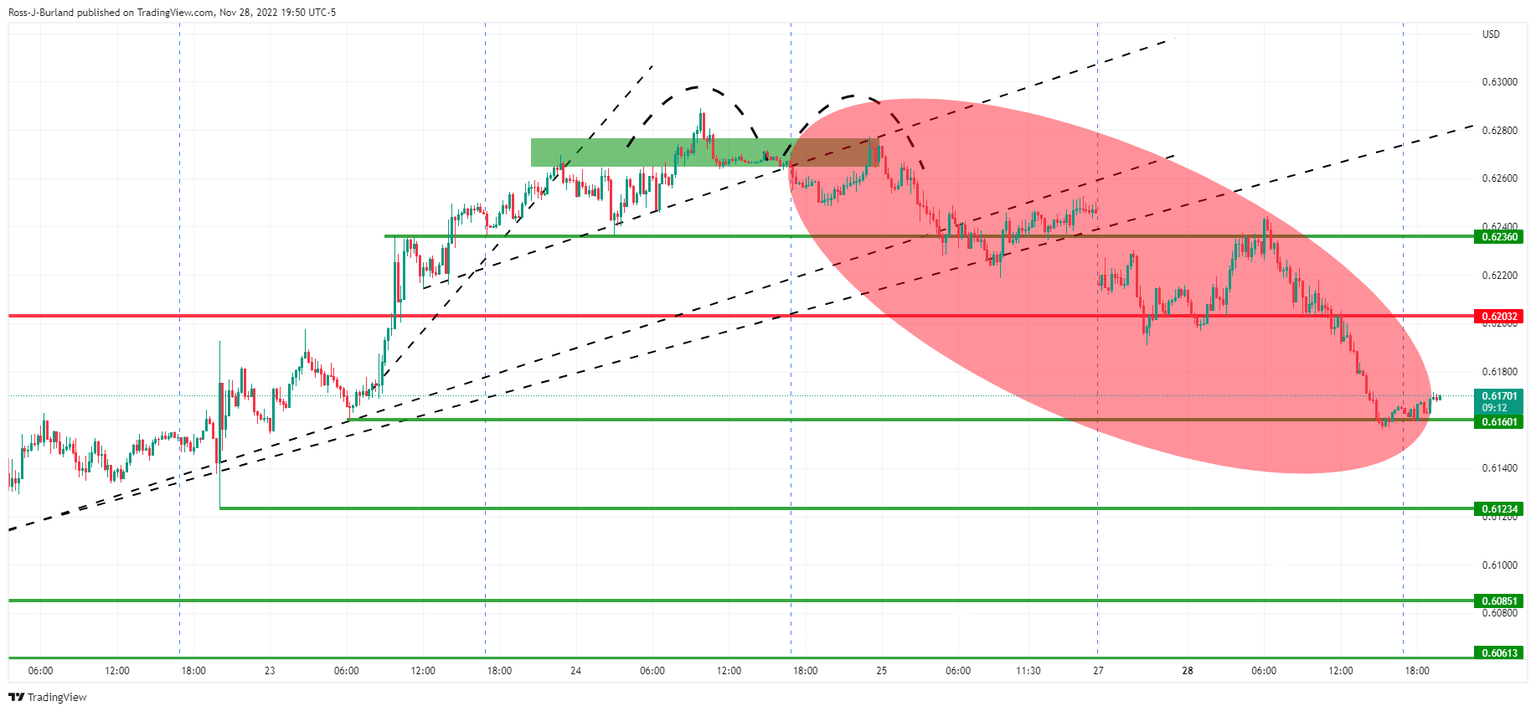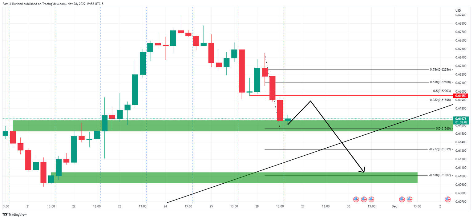 As per the prior analysis, NZD/USD Price Analysis: Bulls seek out 0.6300 while bears eye signs of distribution, the bears indeed moved in and distribution has been in play.