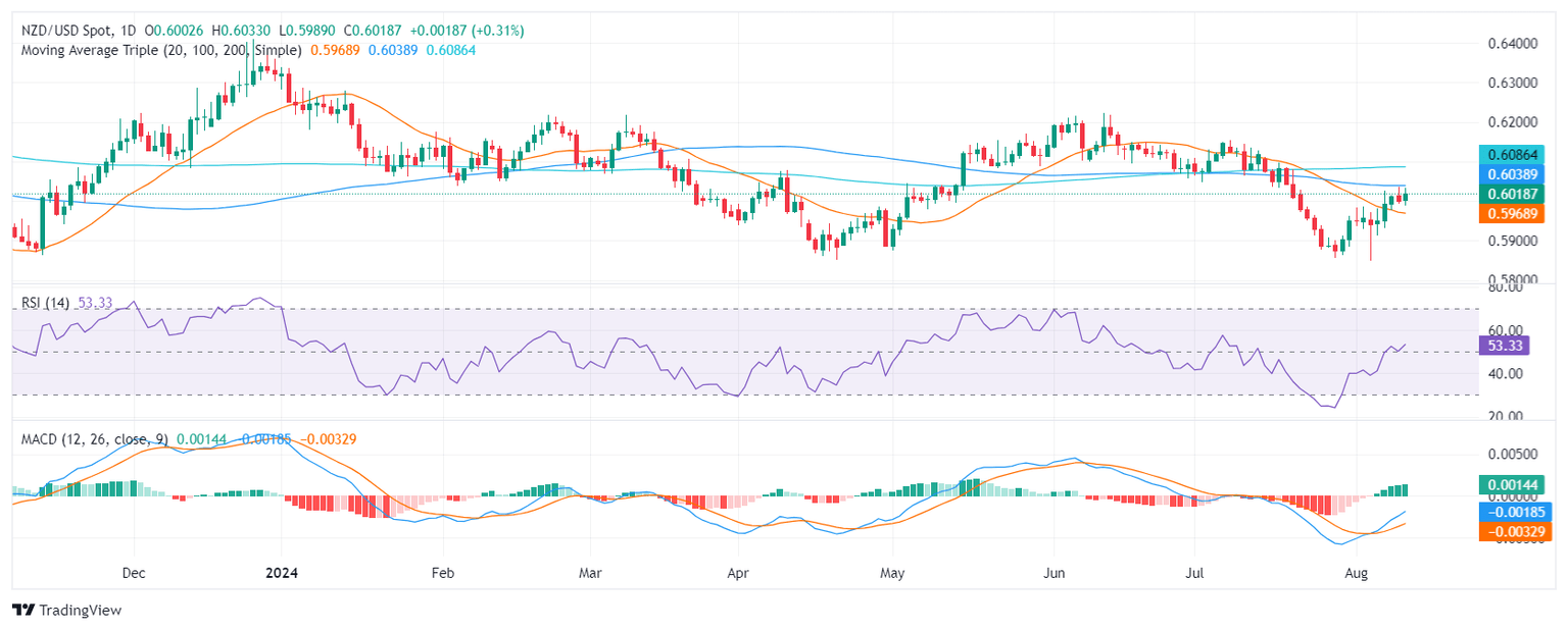 - NZD/USD rises above 0.6000, with bullish momentum increasing.