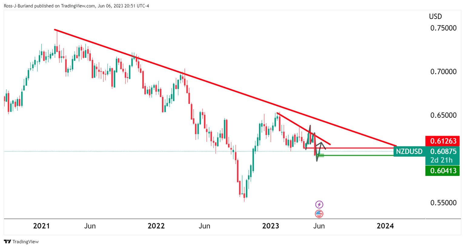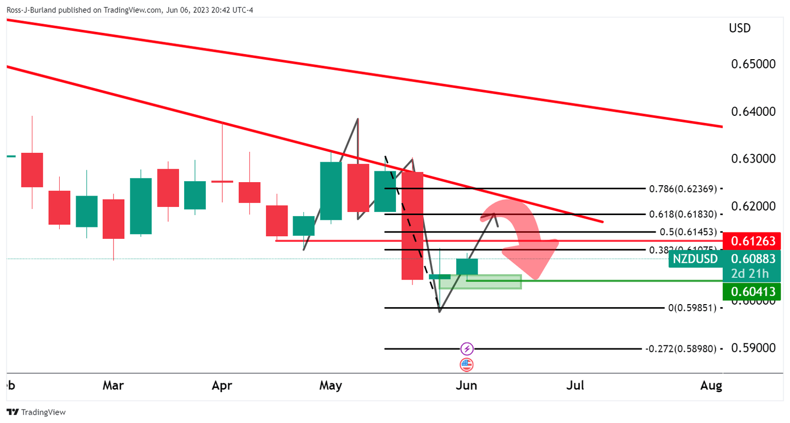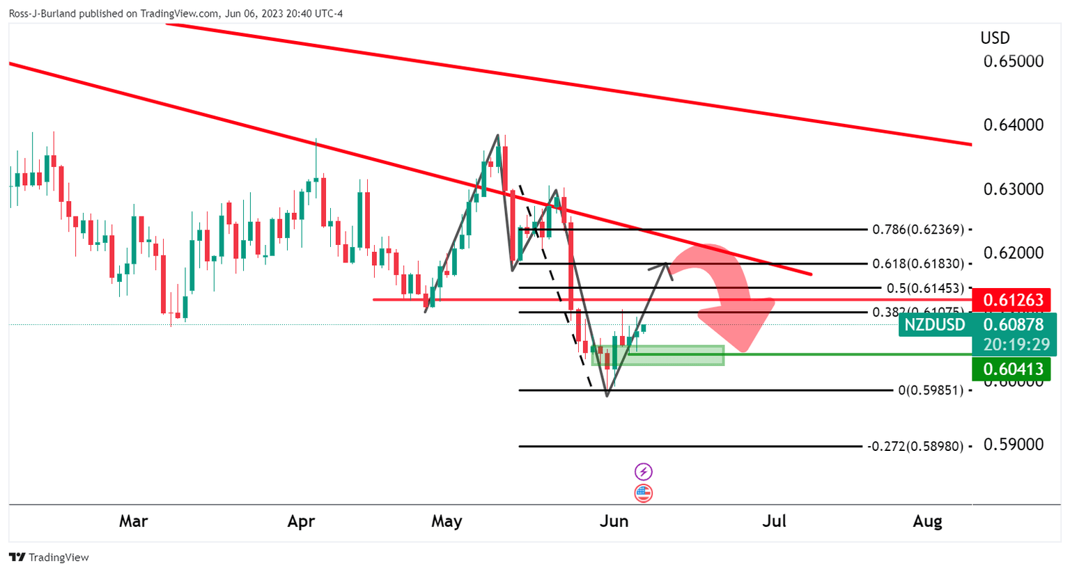 - NZD/USD bulls in the market and eye a move to test resistances.