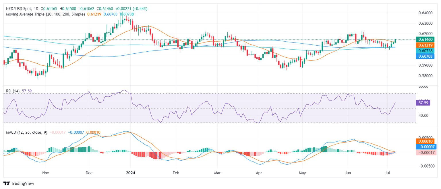 - NZD/USD edged higher and closed above the 20 SMA support around 0.6120.