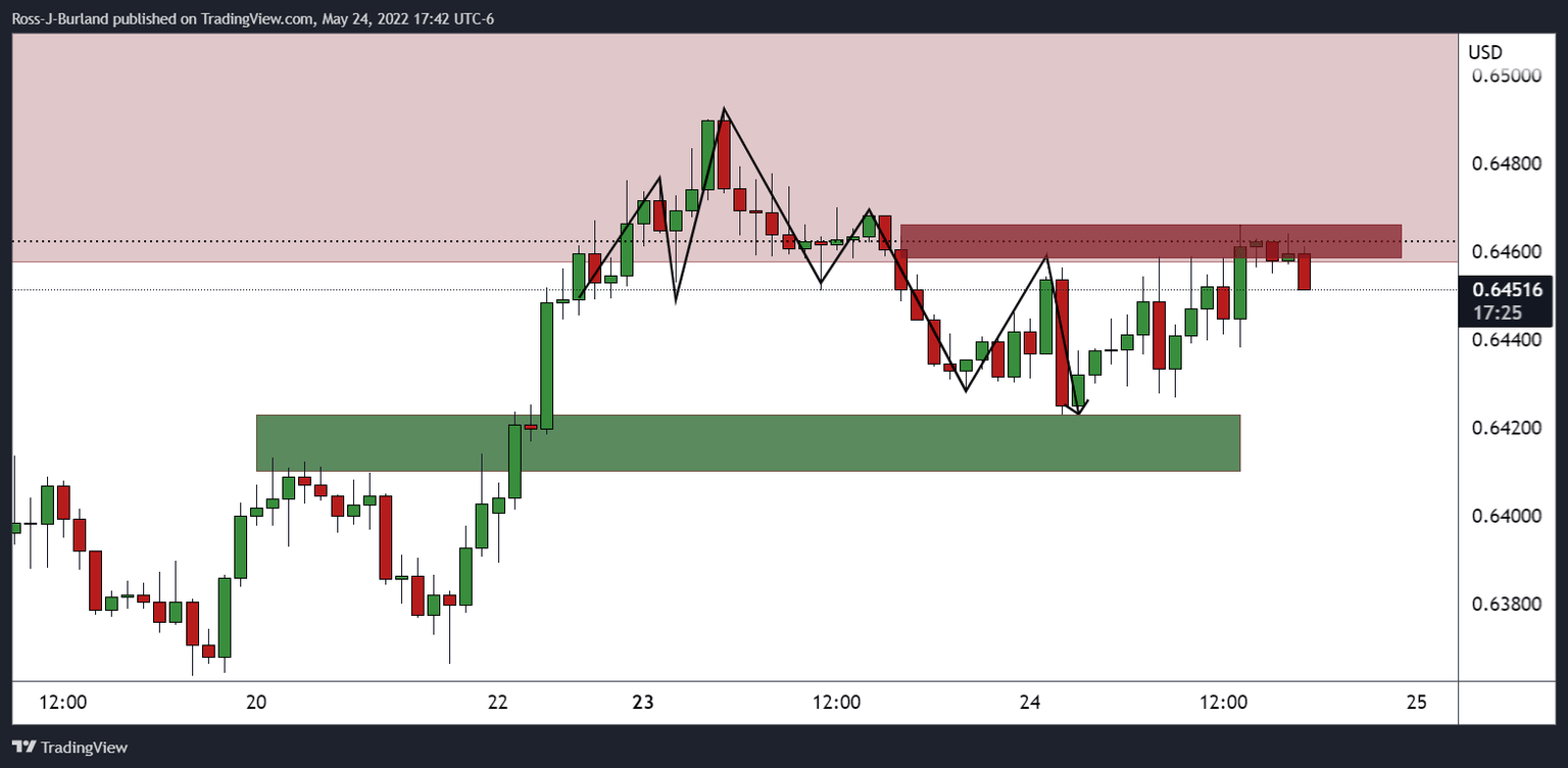 From a weekly perspective, there is room for a higher correction into the prior weekly swing lows that have a confluence with the 38.2% Fibonacci retracement level near 0.6530.