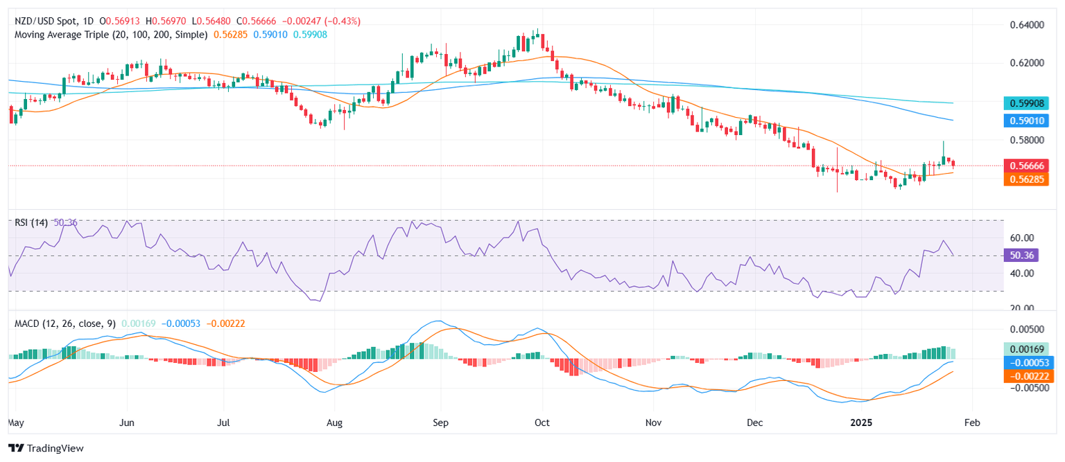 Traders are closely monitoring support near 0.5630 where the 20-day Simple Moving Average stands, which, if breached, could pave the way for a test of the 0.5600 psychological level. On the upside, resistance lies at 0.5705, and a break above this could provide the foundation for a potential rebound. Until then, the pair remains vulnerable to further downside pressures.