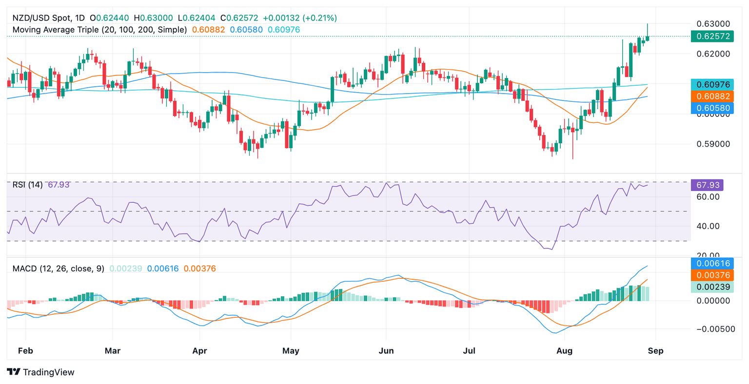 - NZD/USD extended its winning streak in Thursday's session, rising to 0.6255.
