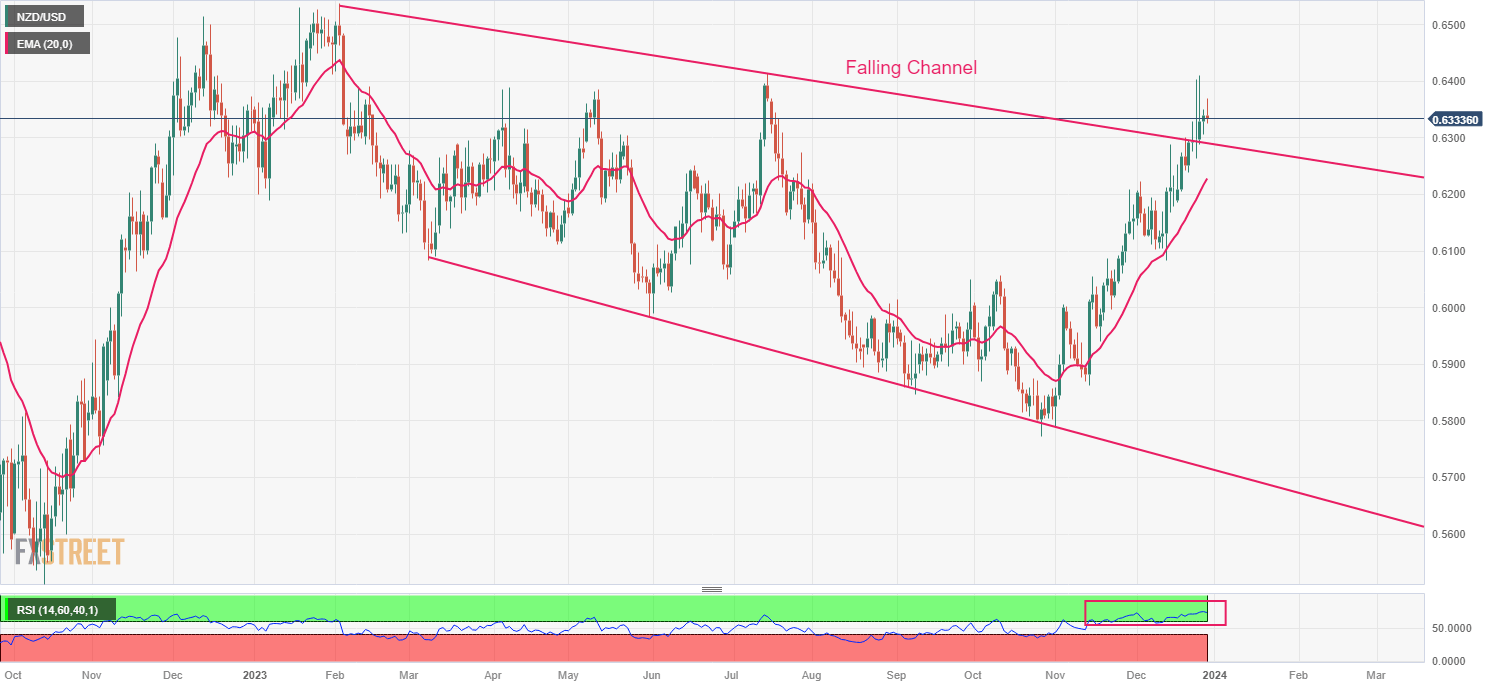 NZD/USD has been sustaining at higher levels after a breakout of the Falling Channel chart pattern formed on a daily scale. Upward-sloping 20-period Exponential Moving Average (EMA) at 0.6230 continues to provide support to the New Zealand Dollar bulls.