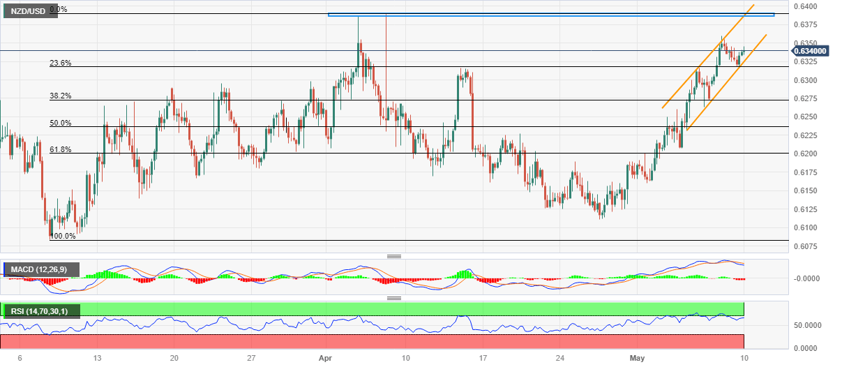 NZD/USD Price Analysis: Edges higher past 0.6300 within weekly bullish channel