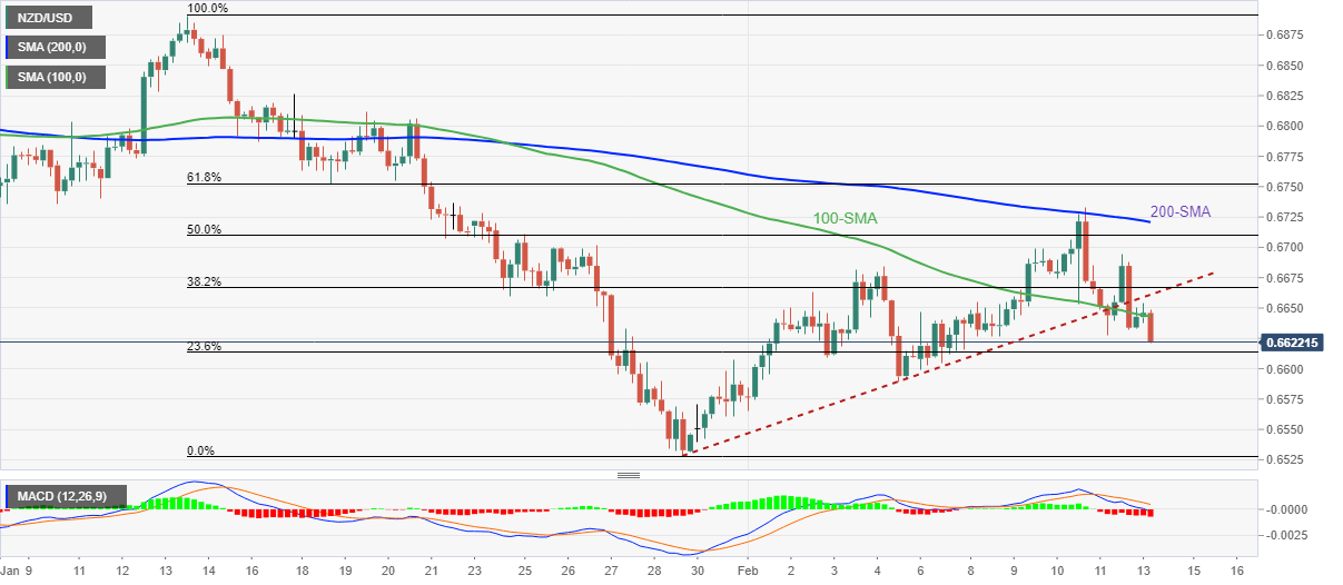 NZD/USD Price Analysis: Extends pullback from 100-SMA towards 0.6600
