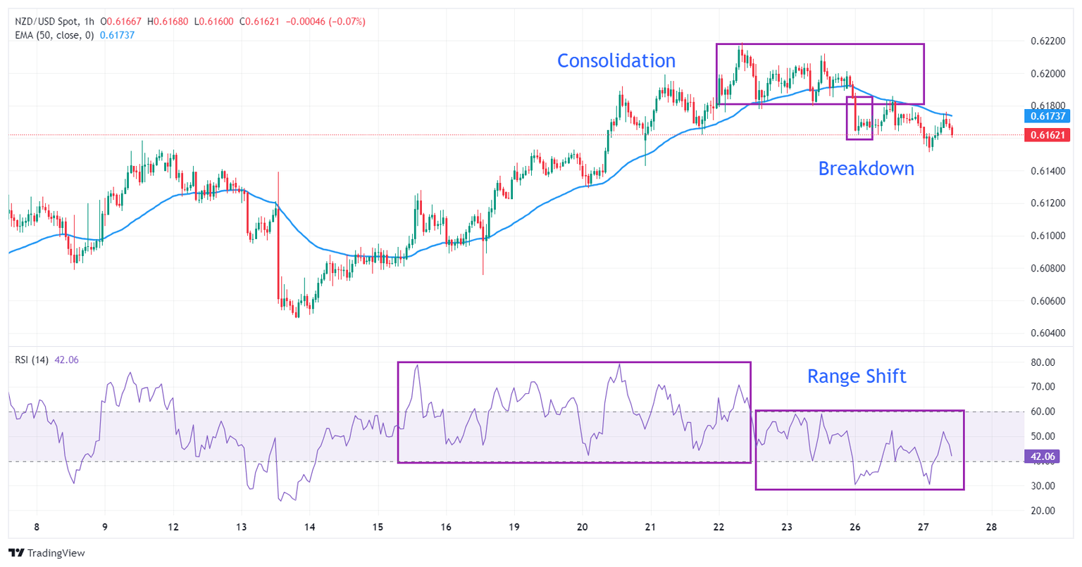The NZD/USD pair remains on the backfoot near 0.6150 in Tuesday’s European session. The Kiwi asset faces a sell-off as investors see the Reserve Bank of New Zealand (RBNZ) keeping its Official Cash Rate (OCR) unchanged at 5.50%.