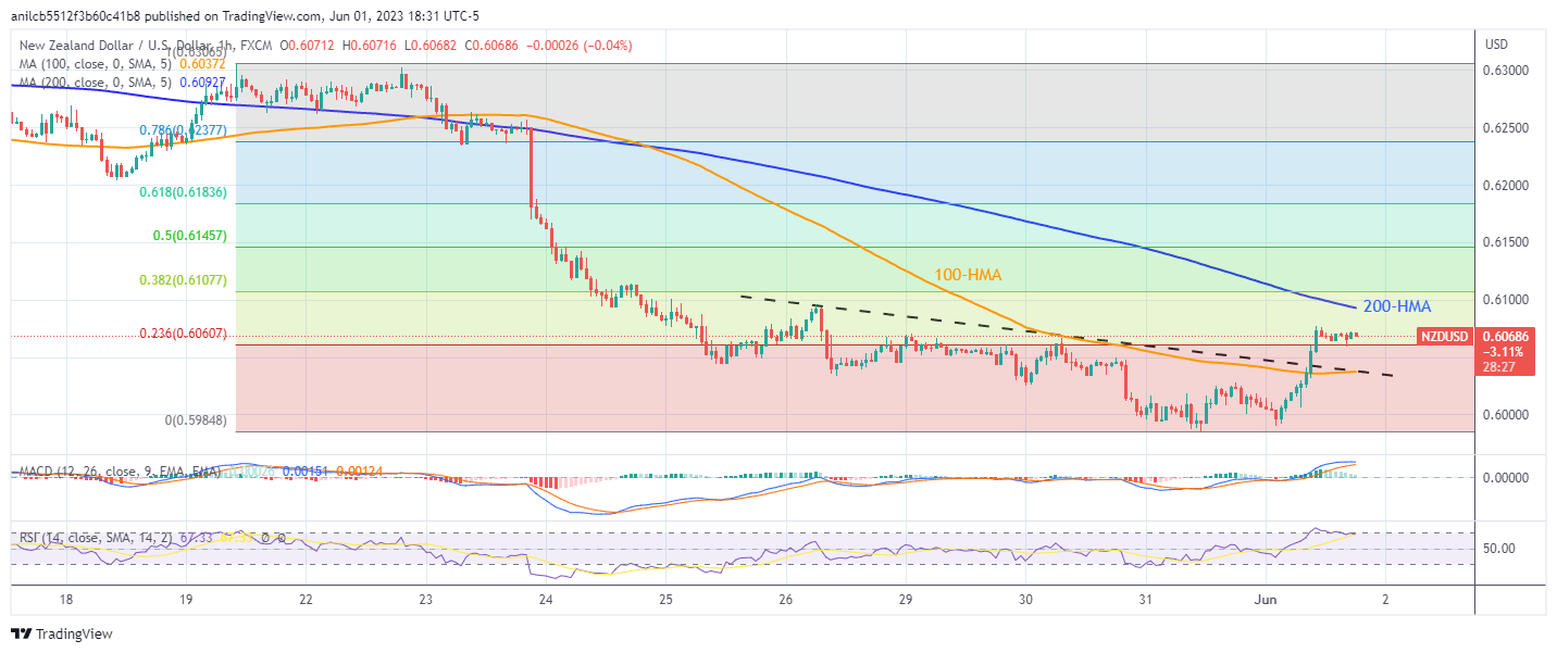 With this, the 200-HMA hurdle of around 0.6095, quickly followed by the 0.6100 round figure, can restrict the immediate upside of the NZD/USD pair.