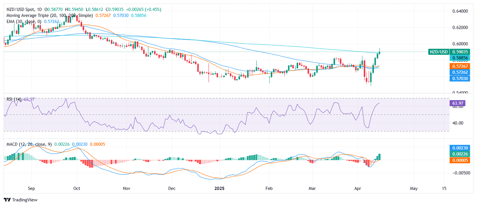 NZD/USD Price Analysis: Kiwi holds near 0.5900 amid sustained bullish signals