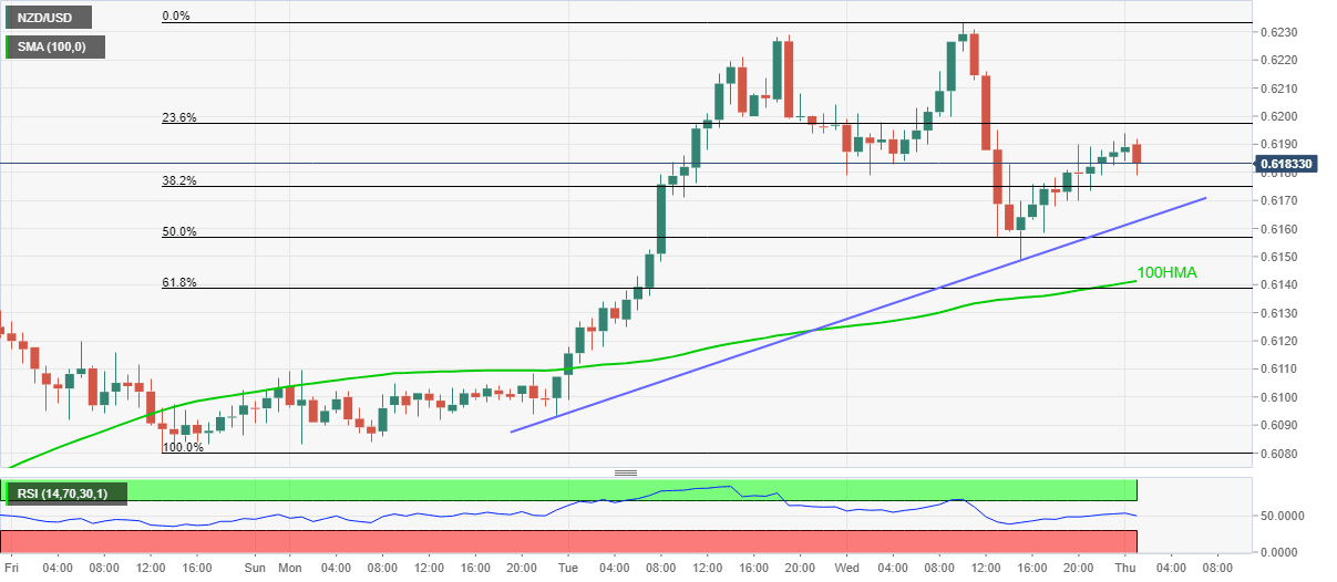 Though, a sustained break above 0.6235 enables the NZD/USD optimists to probe a 200-day EMA level near 0.6300.