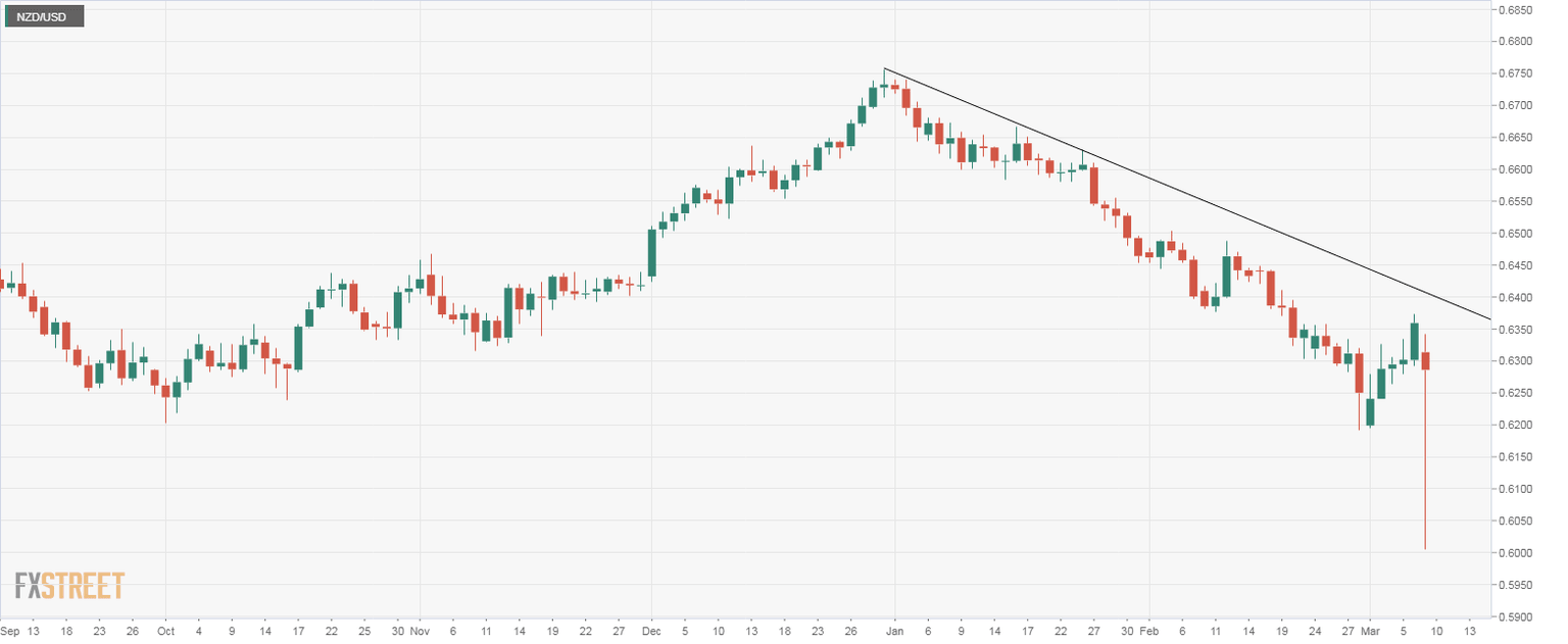 The NZD/USD pair is currently trading near 0.6280, having hit a low of 0.6008 an hour ago.