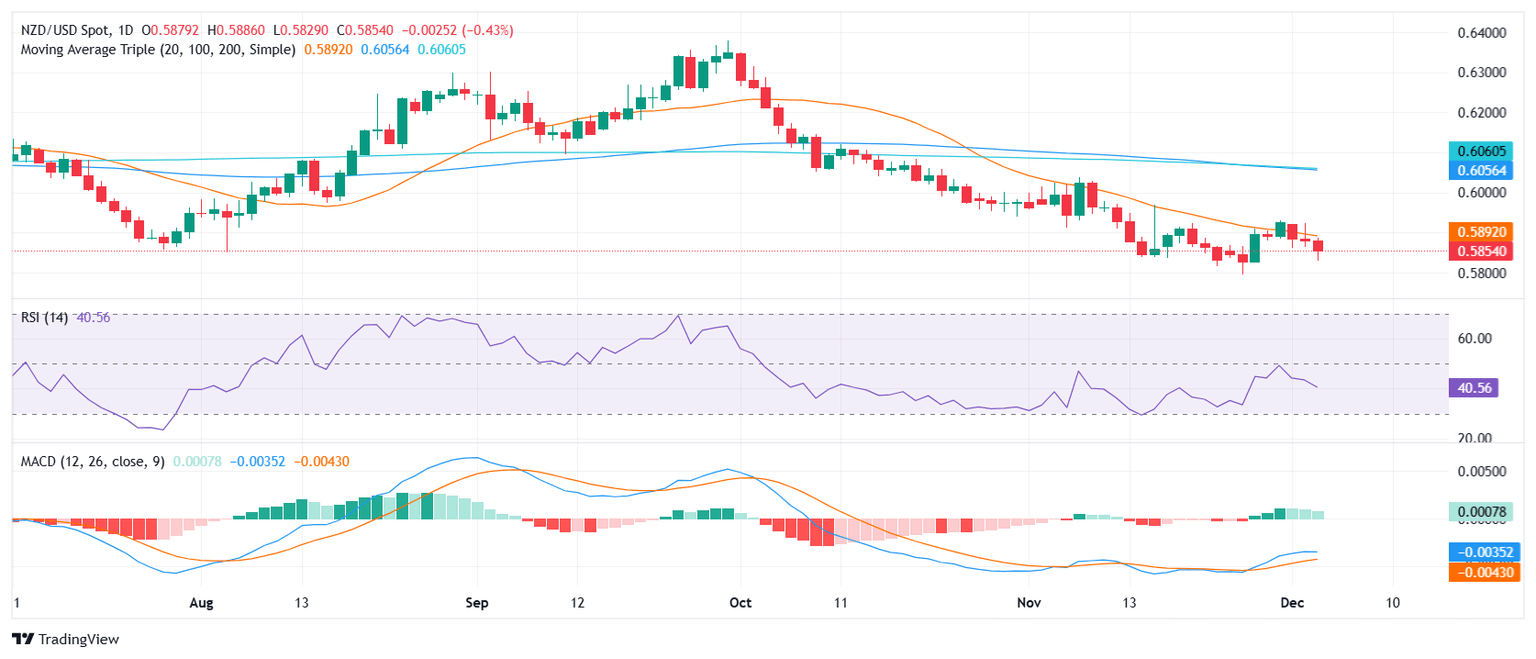 The NZD/USD pair extended its losses on Wednesday, marking a three-day losing streak as it continued to drift lower, closing near 0.5850.