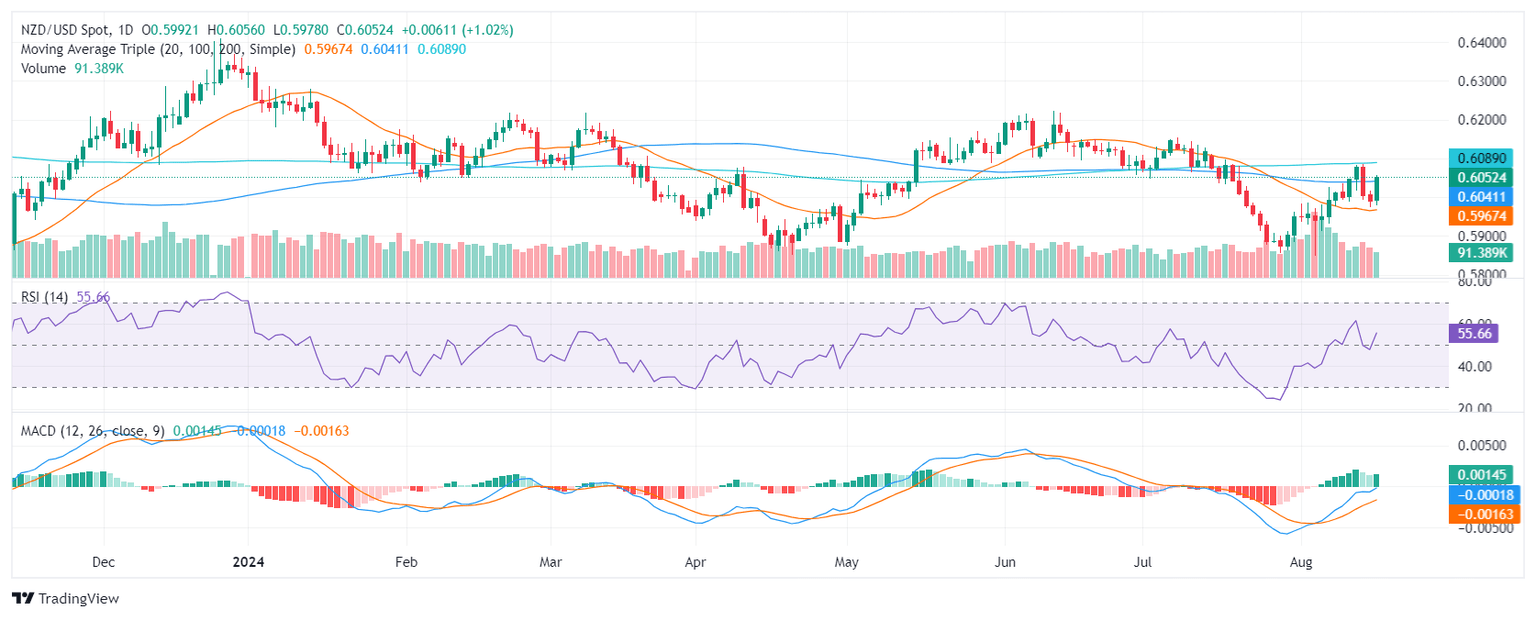 In Friday's session, the NZD/USD pair resumed its upward trajectory, extending gains to 1% to reach 0.6050 and managed to clear part of the last two sessions' losses.