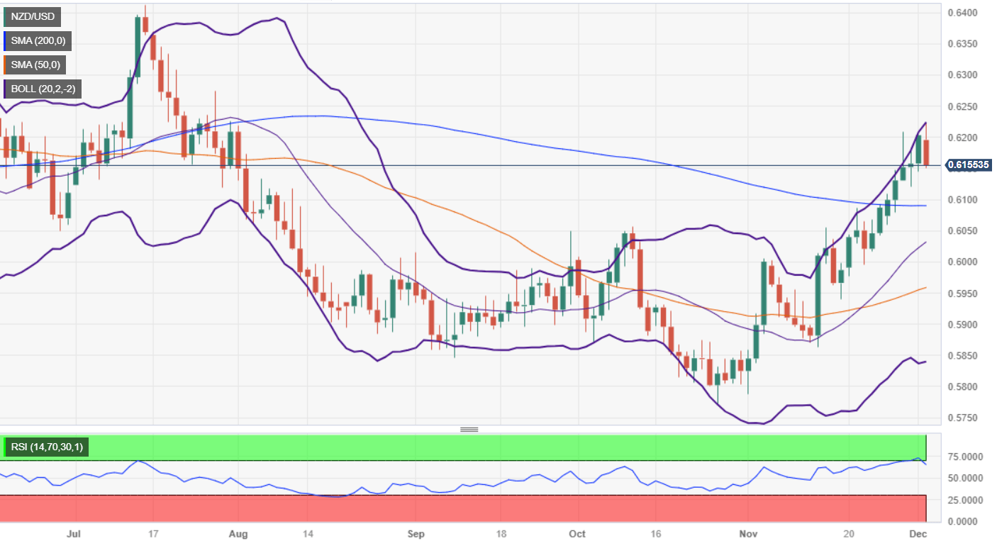 - NZD/USD hit a three-month high, past the 0.6200 figure, but high US bond yields are undermining the pair.