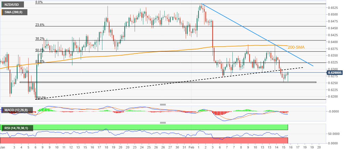 NZD/USD renews intraday high near 0.6290 as it bounces off a 1.5-month low marked the previous day during Thursday’s mid-Asian session.