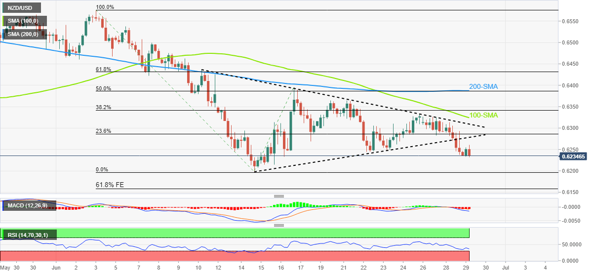 NZD/USD Price Analysis: Renews fortnight low, stays pressured towards 0.6200