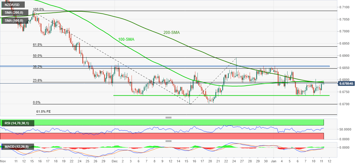 In addition to the downside China data, a confluence of 23.6% Fibonacci retracement, 100-SMA and 200-SMA, around 0.6790-95, also challenged the NZD/USD bulls.