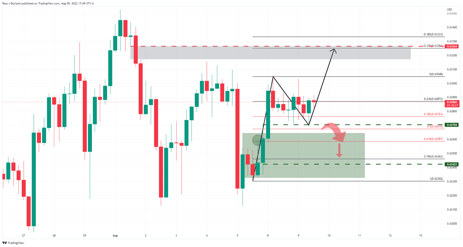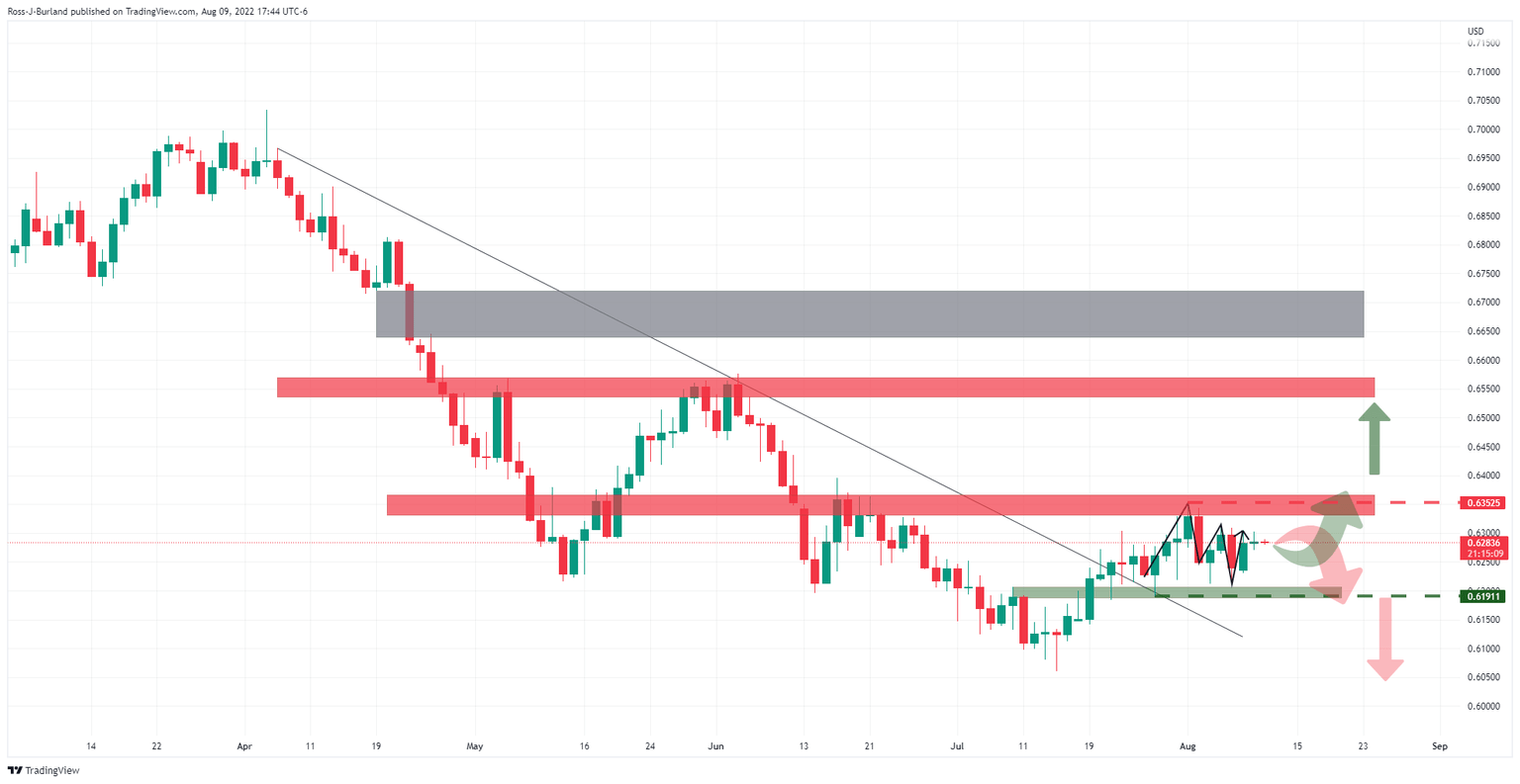 0.6350 is key to the upside while the bears need to get below 0.6190. On a break higher, here is an area of price imbalance that could well be targetted once 0.6550 resistance is overcome. That area is between 0.6645 and 0.6720.