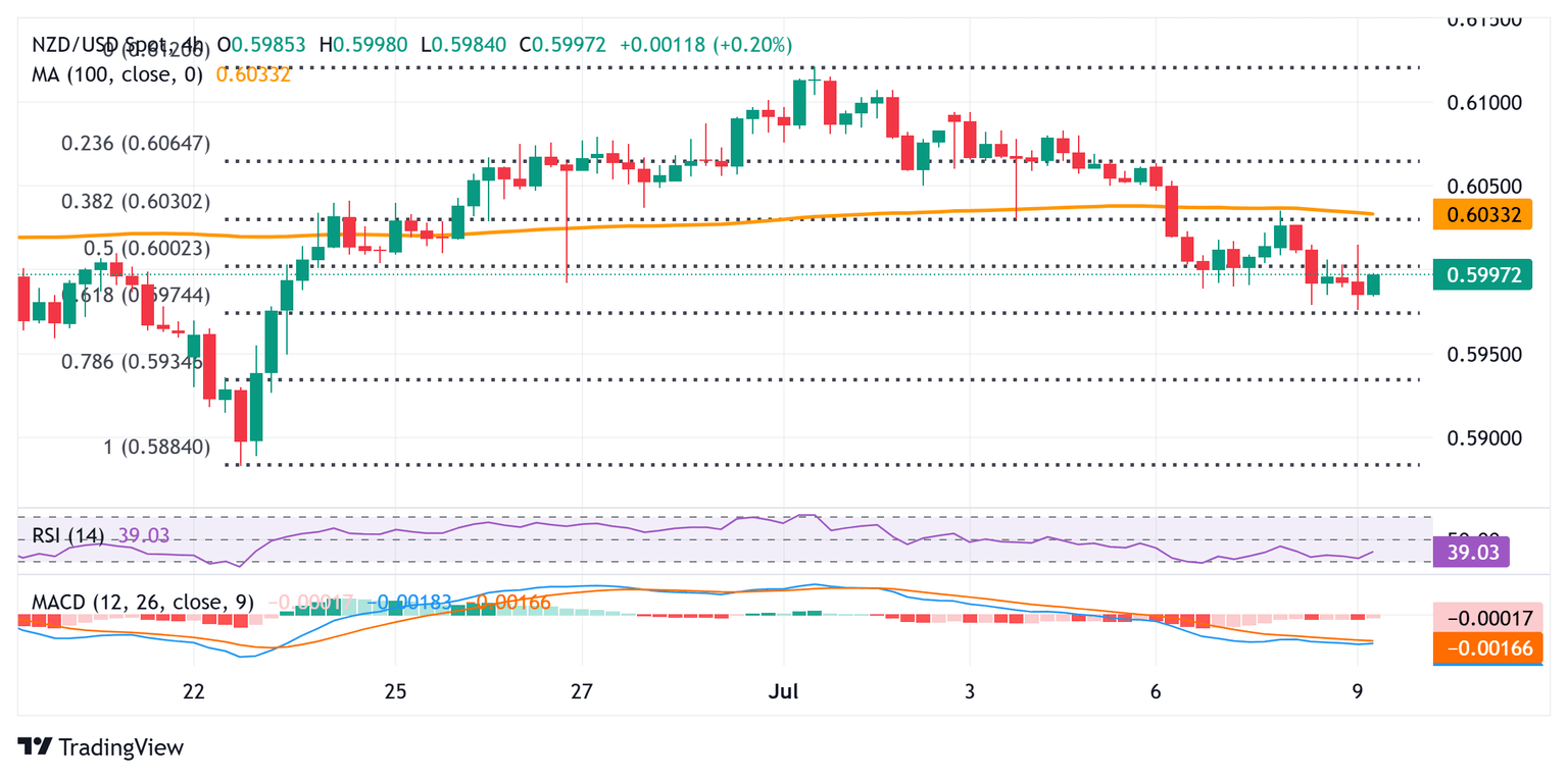 NZD/USD Price Forecast: Hangs near two-week low after RBNZ, seems vulnerable below 0.6000