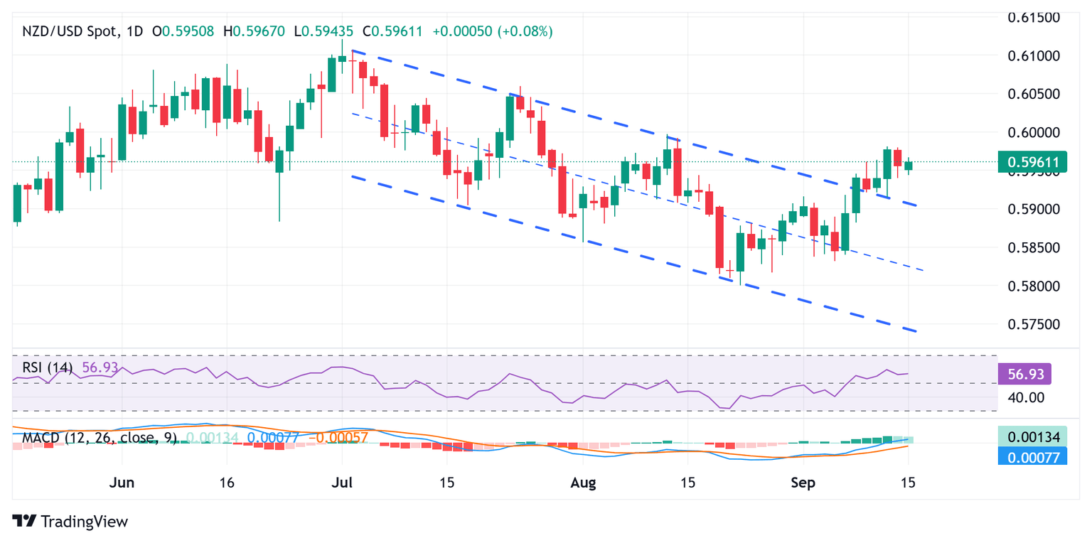 From a technical perspective, last week's breakout through a short-term descending trend-channel extending from the YTD top, touched in July, was seen as a fresh trigger for bullish traders. Moreover, oscillators on the daily chart have just started gaining positive traction and back the case for further gains for the NZD/USD pair. Hence, a subsequent strength, towards the 0.6000 psychological mark, looks like a distinct possibility.