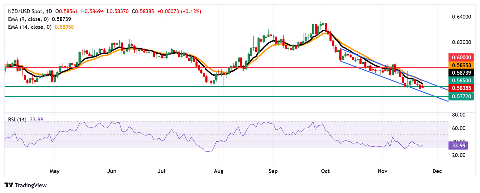 NZD/USD Price Forecast: Moves below 0.5850 toward an oversold zone