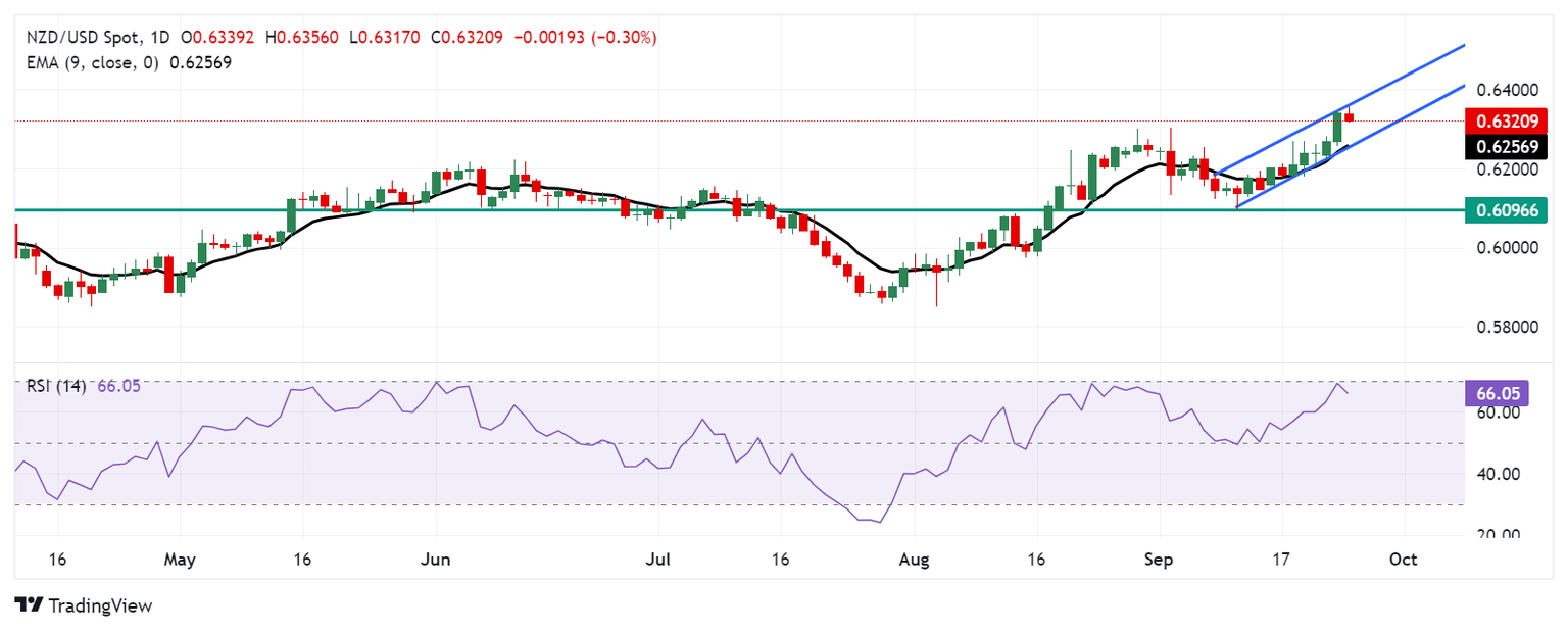 NZD/USD Price Forecast: Remains below 0.6350, the upper boundary of the ascending channel